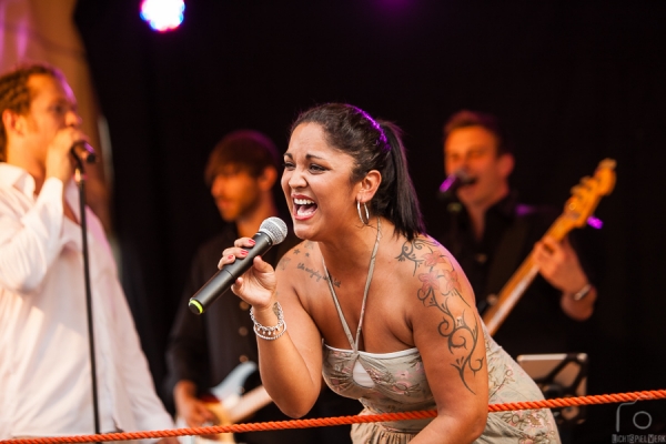Die charismatischen lead vocals ziehen das Publikum von Anfang an mit. Wer da noch still sitzen bleibt, muß völlig resistent sein.